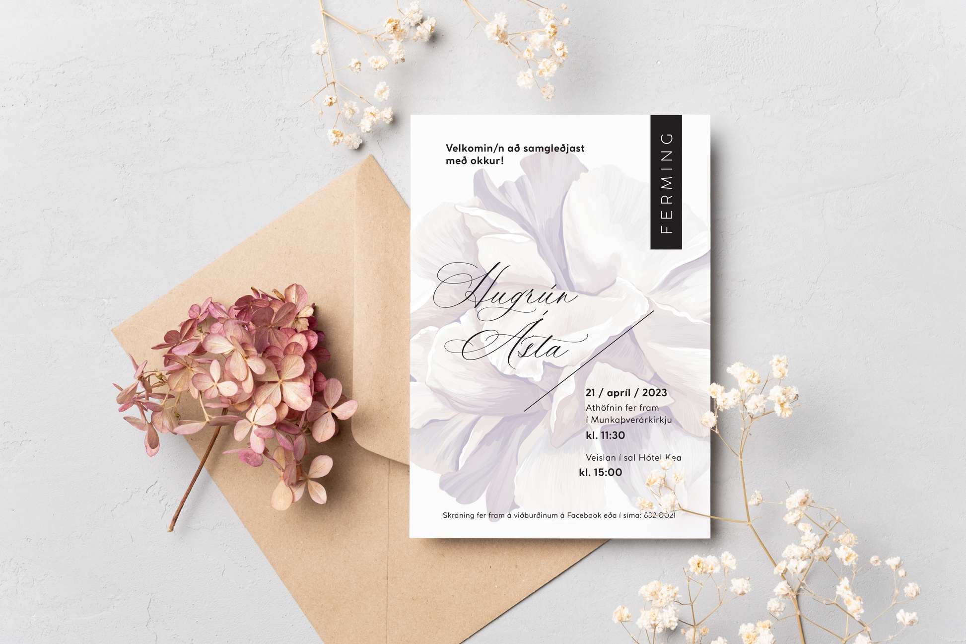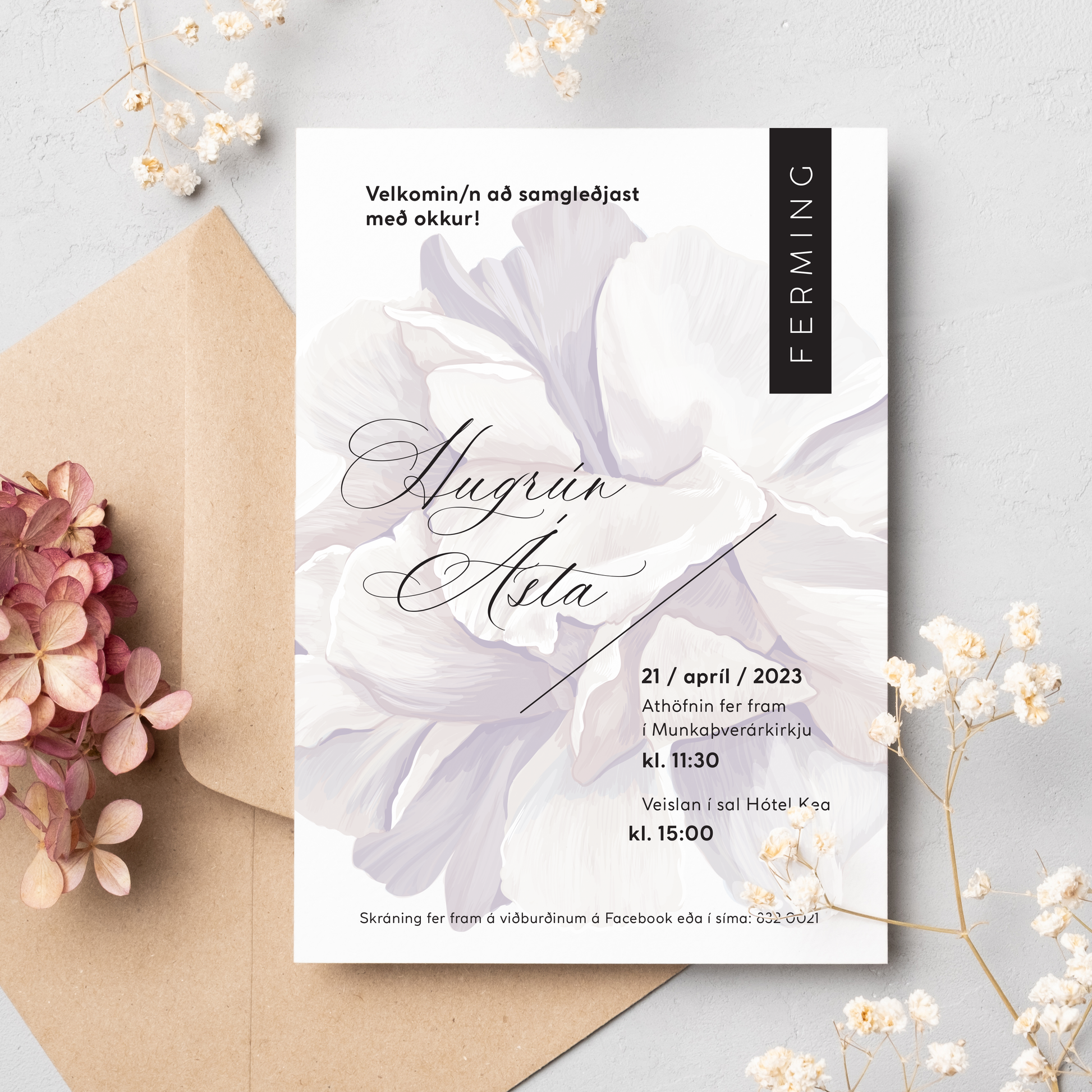Boðskort í stærð A5 - 14,8cm x 21cm, prentað á hágæða 300g pappír.