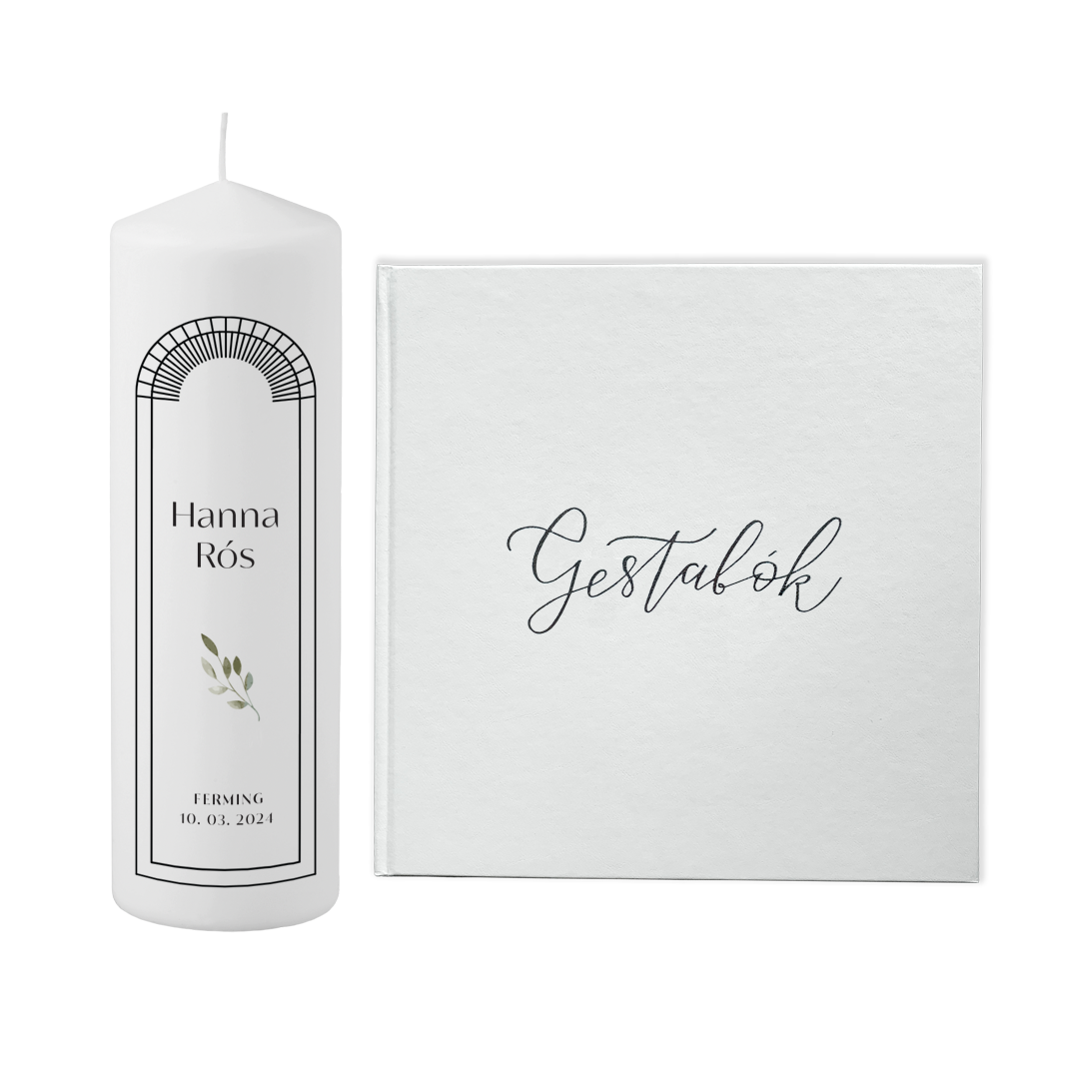 - skrautritun með nafni og dagsetningu fremst í gestabókinni