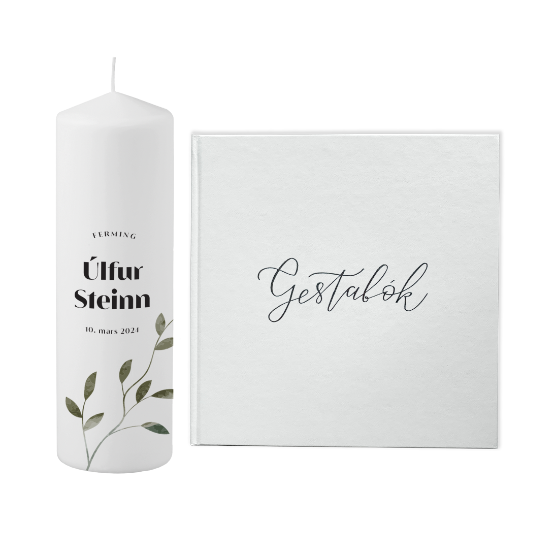 - skrautritun með nafni og dagsetningu fremst í gestabókinni