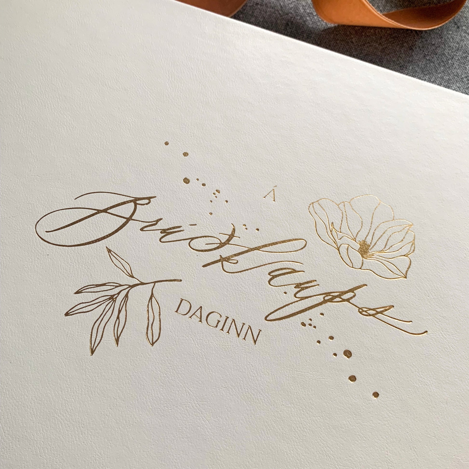 Við bjóðum einnig upp á skrautritun fremst í bókinni ef þess er óskað fyrir aukagjald.