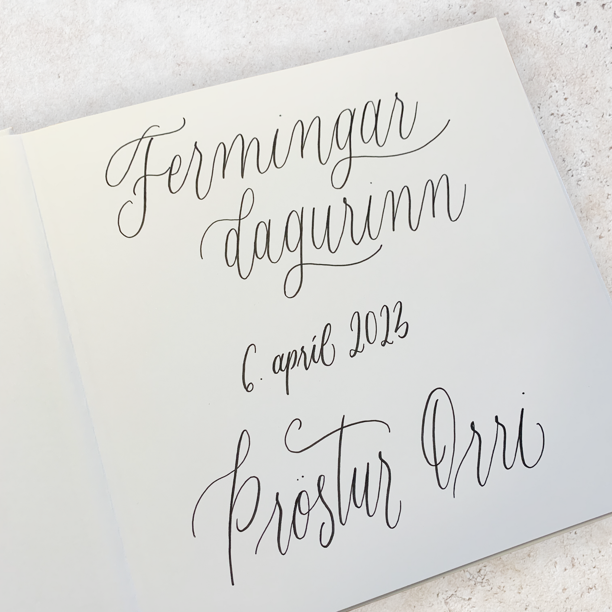 Ef þú vilt fá skrautritun veldu gestabók "með skrautritun"
